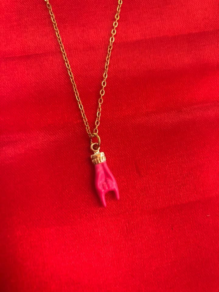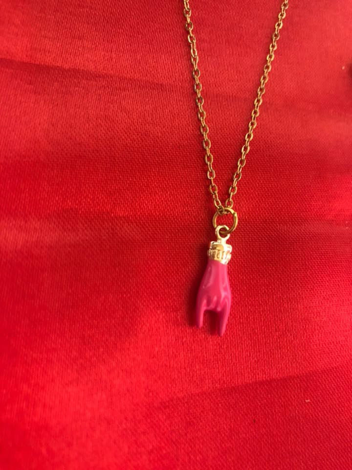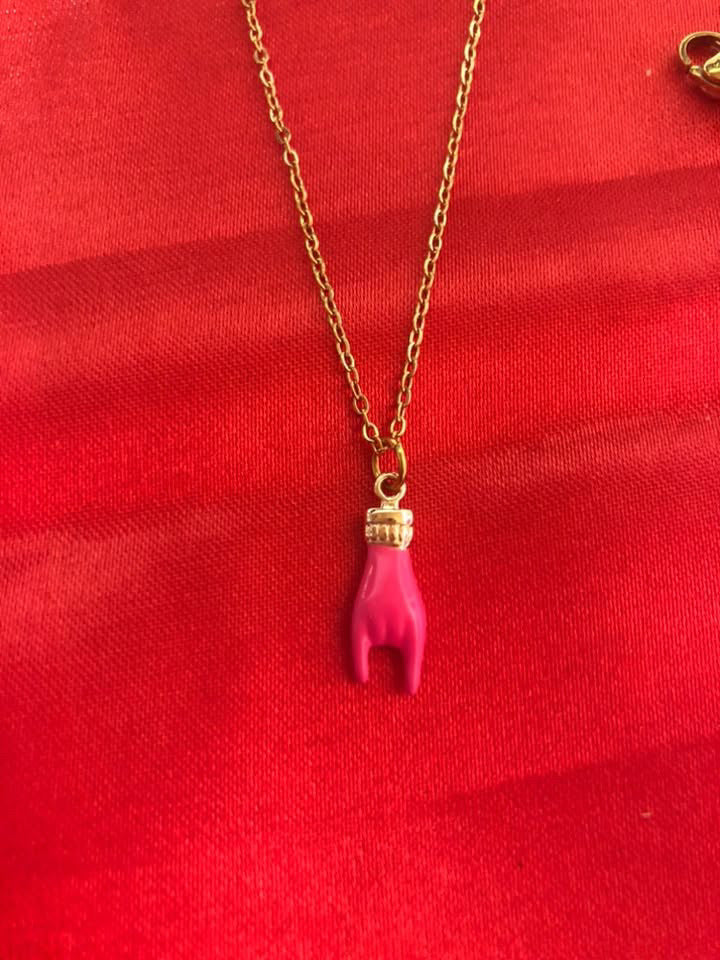 Collana acciaio inossidabile 50 cm + estensione con mano fuchsia